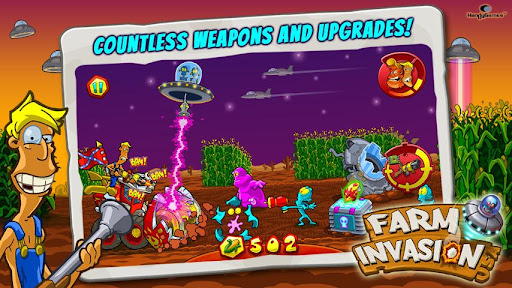 It’s been a peaceful day in Texas, with the sun burning down its last rays on Redneck Pops and his two sons Joe and Otis, counting the harvested corn on their porch… when suddenly unknown flying objects are landing and hoggish blue noses start frying fresh corn to make popcorn of it! Reasons enough to welcome the new visitors the Earthling way! Help the two brothers Joe and Otis, get a shotgun, the deadly rocket launcher or a hunting rifle and start the engine of the family’s heirloom, the mighty corn chopper! Race down the fields and banish the popcorn raiders with the sharp blades of your thresher! Use aimed shots to get down their spaceships and avoid obstacles on the field to collect the remaining corn! The craziest invasion of the third kind has just begun!